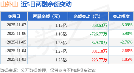 证券之星消息,11月7日,山外山(688410)融资买入647.47万元,融资偿还1006.1万元,融资净卖出358.63万元,融资余额1.12亿元。