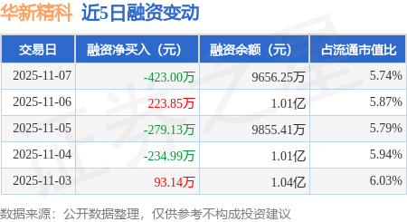 证券之星消息,11月7日,华新精科(603370)融资买入845.26万元,融资偿还1268.27万元,融资净卖出423.0万元,融资余额9656.25万元。