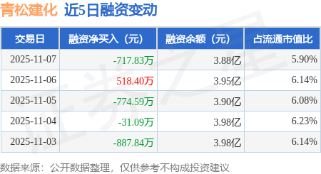 证券之星消息,11月7日,青松建化(600425)融资买入3050.48万元,融资偿还3768.31万元,融资净卖出717.83万元,融资余额3.88亿元。