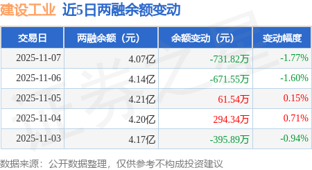 证券之星消息,11月7日,建设工业(002265)融资买入1327.7万元,融资偿还2061.39万元,融资净卖出733.69万元,融资余额4.05亿元。