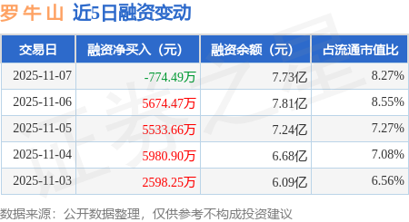 证券之星消息,11月7日,罗 牛 山(000735)融资买入1.31亿元,融资偿还1.39亿元,融资净卖出774.49万元,融资余额7.73亿元,近20个交易日中有13个交易日出现融资净买入。