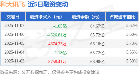 证券之星消息,11月7日,科大讯飞(002230)融资买入2.72亿元,融资偿还3.78亿元,融资净卖出1.05亿元,融资余额64.67亿元,近20个交易日中有12个交易日出现融资净买入。