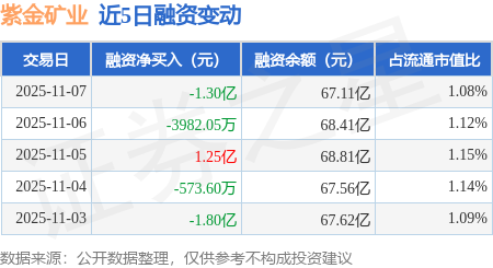 证券之星消息,11月7日,紫金矿业(601899)融资买入2.41亿元,融资偿还3.72亿元,融资净卖出1.3亿元,融资余额67.11亿元。