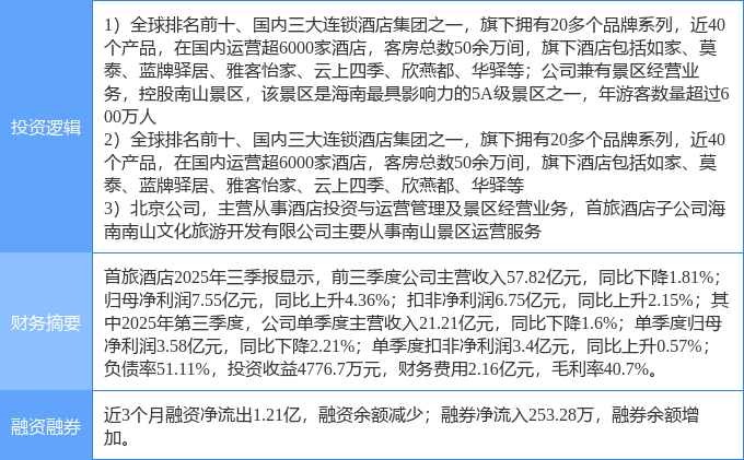 证券之星消息,首旅酒店11月10日涨停收盘,收盘价16.15元。该股于13点34分涨停,9次打开涨停,截止收盘封单资金为267.93万元,占其流通市值0.01%。