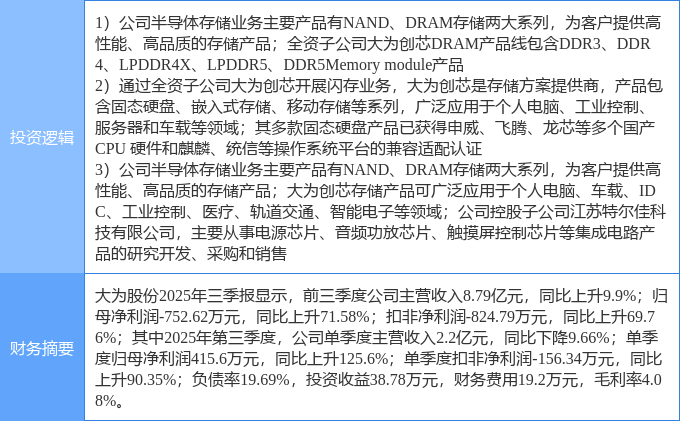 该股为DRAM(内存),闪存,半导体概念热股,当日DRAM(内存)概念上涨3.34%,闪存概念上涨3.16%,半导体概念上涨0.94%。