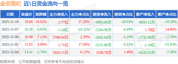 11月10日的资金流向数据方面,主力资金净流入1.77亿元,占总成交额37.2%,游资资金净流出9003.06万元,占总成交额18.93%,散户资金净流出8693.12万元,占总成交额18.28%。
