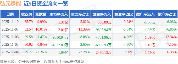 证券之星消息,弘元绿能11月10日涨停收盘,收盘价35.79元。该股于9点34分涨停,4次打开涨停,截止收盘封单资金为2.53亿元,占其流通市值1.04%。