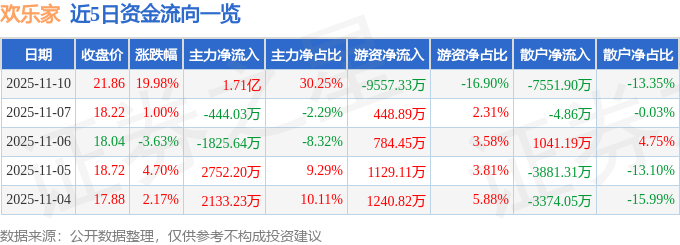证券之星消息,欢乐家11月10日涨停收盘,收盘价21.86元。该股于10点32分涨停,1次打开涨停,截止收盘封单资金为5626.76万元,占其流通市值0.67%。