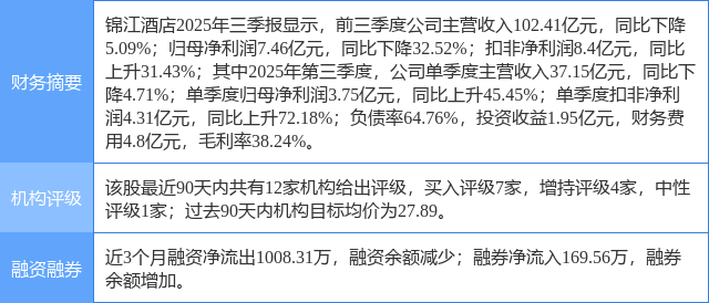 2025年11月2日,东吴证券研究员吴劲草,石旖瑄,王琳婧发布了对锦江酒店的研报《2025年三季报点评:归母净利同增45%,RevPAR降幅收窄》,该研报对锦江酒店给出“买入”评级。研报中预计2025-2027年公司归母净利润分别为8.2/11.1/12.7亿元(前值为10.3/12.6/14.4亿元),对应PE估值为28/21/18倍,考虑26年PE估值21倍处于历史估值区间低位,维持“买入”评级。证券之星数据中心根据近三年发布的研报数据计算,该研报作者对此股的盈利预测准确度为55.99%。