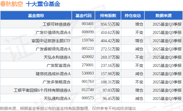 重仓春秋航空的前十大公募基金请见下表: