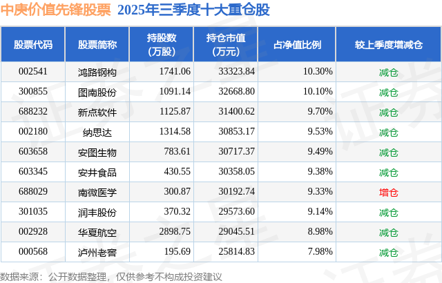 根据2025基金Q3季报公募基金重仓股数据,重仓该股的公募基金共33家,其中持有数量最多的公募基金为中庚基金的中庚价值先锋股票。中庚价值先锋股票目前规模为32.36亿元,最新净值1.0547(11月7日),较上一交易日下跌0.32%,近一年上涨0.7%。该公募基金现任基金经理为陈涛。陈涛在任的基金产品包括:中庚小盘价值股票,管理时间为2024年7月19日至今,期间收益率为34.68%。