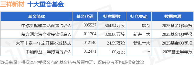 根据2025基金Q3季报公募基金重仓股数据,重仓该股的公募基金共3家,其中持有数量最多的公募基金为中航基金的中航新起航灵活配置混合A。中航新起航灵活配置混合A目前规模为1.2亿元,最新净值0.8559(11月7日),较上一交易日下跌0.41%,近一年上涨64.03%。该公募基金现任基金经理为韩浩。韩浩在任的基金产品包括:中航军民融合精选A,管理时间为2018年2月9日至今,期间收益率为53.16%;中航华证商飞高端制造产业指数发起A,管理时间为2023年3月7日至今,期间收益率为-3.95%;中航机遇领航混合发起A,管理时间为2023年8月10日至今,期间收益率为212.23%。