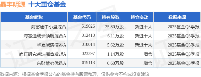 根据2025基金Q3季报公募基金重仓股数据,重仓该股的公募基金共5家,其中持有数量最多的公募基金为海富通基金的海富通中小盘混合。海富通中小盘混合目前规模为7.14亿元,最新净值2.2364(11月7日),较上一交易日上涨0.18%,近一年上涨48.65%。该公募基金现任基金经理为范庭芳。范庭芳在任的基金产品包括:海富通碳中和混合A,管理时间为2021年9月24日至今,期间收益率为-15.71%;海富通成长领航混合A,管理时间为2021年12月7日至今,期间收益率为3.64%。