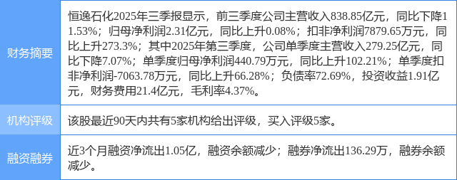 2025年10月13日,东吴证券研究员陈淑娴,周少玟发布了对恒逸石化的研报《聚酯行业景气修复,公司钦州项目即将投产》,该研报对恒逸石化给出“买入”评级。研报中预计2025-2027年公司归母净利润分别为4.3、6.5、8.2亿元,根据2025年10月9日收盘价,对应A股PE分别56、37、29倍。我们看好公司未来成长性,首次覆盖给予“买入”评级。证券之星数据中心根据近三年发布的研报数据计算,该研报作者对此股的盈利预测准确度为24.31%。