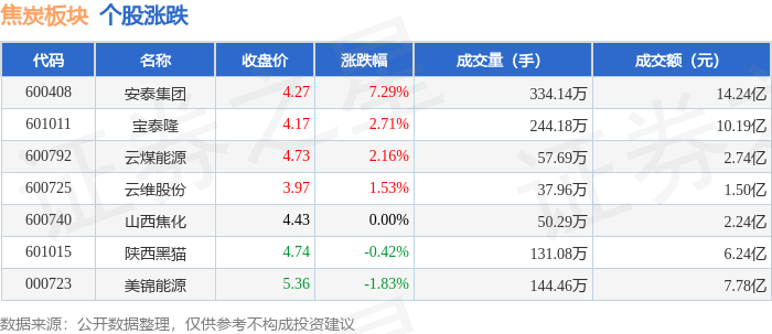 证券之星消息,11月10日焦炭板块较上一交易日上涨0.31%,安泰集团领涨。当日上证指数报收于4018.6,上涨0.53%。深证成指报收于13427.61,上涨0.18%。焦炭板块个股涨跌见下表: