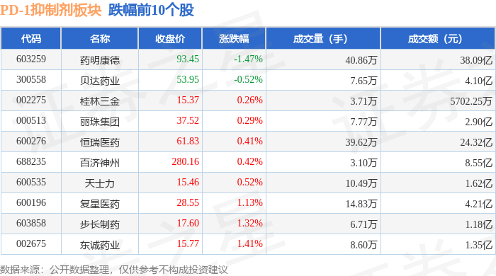 证券之星消息,11月10日PD-1抑制剂板块较上一交易日上涨0.2%,安科生物领涨。当日上证指数报收于4018.6,上涨0.53%。深证成指报收于13427.61,上涨0.18%。PD-1抑制剂板块个股涨跌见下表: