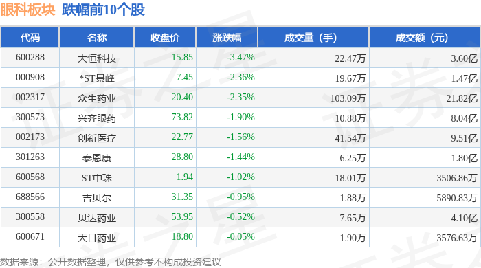 证券之星消息,11月10日眼科板块较上一交易日上涨1.13%,人民同泰领涨。当日上证指数报收于4018.6,上涨0.53%。深证成指报收于13427.61,上涨0.18%。眼科板块个股涨跌见下表: