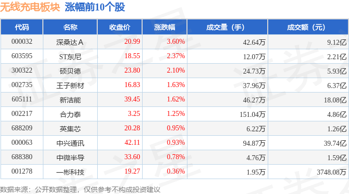 证券之星消息,11月10日无线充电板块较上一交易日下跌1.78%,欣旺达领跌。当日上证指数报收于4018.6,上涨0.53%。深证成指报收于13427.61,上涨0.18%。无线充电板块个股涨跌见下表: