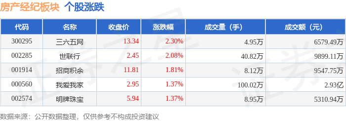 证券之星消息,11月10日房产经纪板块较上一交易日上涨1.75%,三六五网领涨。当日上证指数报收于4018.6,上涨0.53%。深证成指报收于13427.61,上涨0.18%。房产经纪板块个股涨跌见下表: