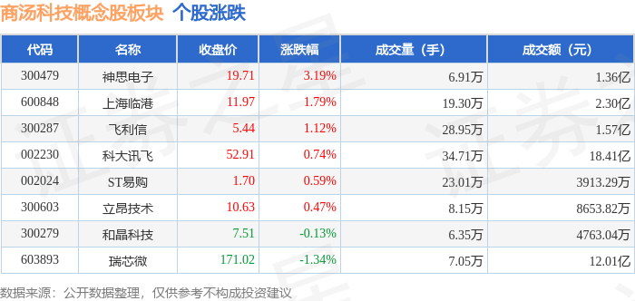 证券之星消息,11月10日商汤科技概念股板块较上一交易日上涨0.27%,神思电子领涨。当日上证指数报收于4018.6,上涨0.53%。深证成指报收于13427.61,上涨0.18%。商汤科技概念股板块个股涨跌见下表: