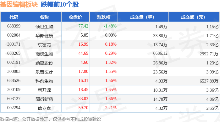 从资金流向上来看,当日基因编辑板块主力资金净流入2.18亿元,游资资金净流出1.56亿元,散户资金净流出6238.03万元。基因编辑板块个股资金流向见下表: