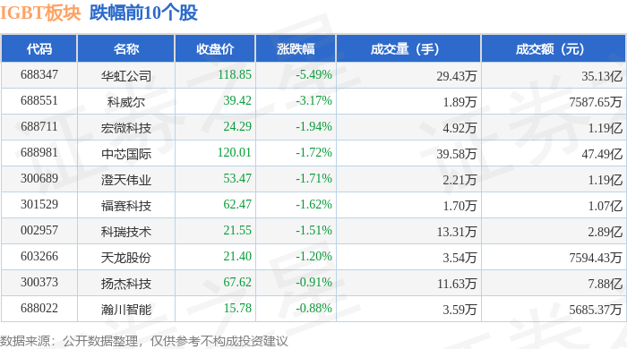 从资金流向上来看,当日IGBT板块主力资金净流出2.89亿元,游资资金净流入3.62亿元,散户资金净流出7370.64万元。IGBT板块个股资金流向见下表: