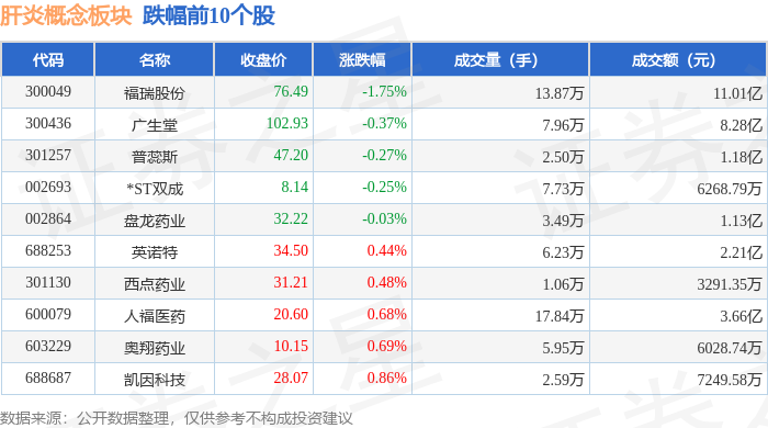 证券之星消息,11月10日肝炎概念板块较上一交易日上涨1.96%,热景生物领涨。当日上证指数报收于4018.6,上涨0.53%。深证成指报收于13427.61,上涨0.18%。肝炎概念板块个股涨跌见下表: