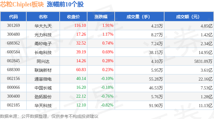 从资金流向上来看,当日芯粒Chiplet板块主力资金净流出9.83亿元,游资资金净流入1.57亿元,散户资金净流入8.25亿元。芯粒Chiplet板块个股资金流向见下表: