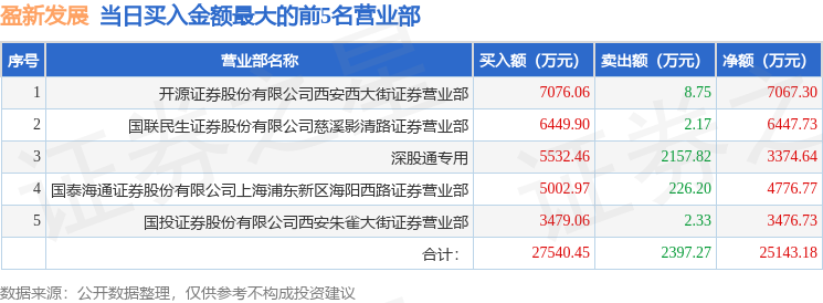 证券之星消息,沪深交易所2025年11月10日公布的交易公开信息显示,盈新发展(000620)因日涨幅偏离值达到7%的前5只证券登上龙虎榜。此次是近5个交易日内第3次上榜。