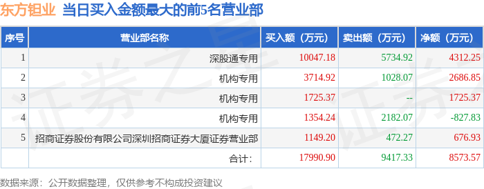 从龙虎榜公布的当日买卖数据来看,机构合计净卖出2124.44万元,北向资金合计净买入4312.25万元。呼家楼等知名游资榜上有名。(知名游资呼家楼一般指中信证券股份有限公司北京总部证券营业部席位,根据市场资料整理,仅供参考)
