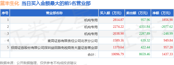 证券之星消息,沪深交易所2025年11月10日公布的交易公开信息显示,蓝丰生化(002513)因日换手率达到20%的前5只证券登上龙虎榜。此次是近5个交易日内第2次上榜。