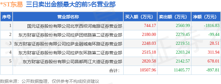 证券之星消息,沪深交易所2025年11月10日公布的交易公开信息显示,*ST东易(002713)因连续三个交易日内,涨幅偏离值累计达到12%的ST证券、*ST证券和未完成股改证券登上龙虎榜。此次是近5个交易日内第2次上榜。