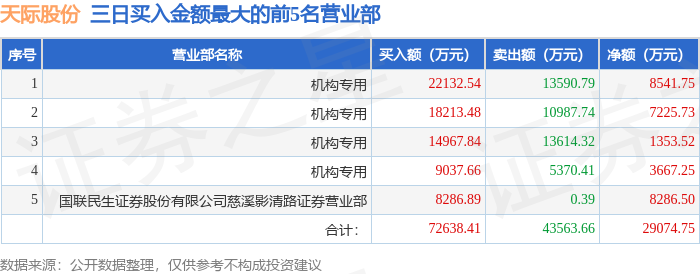 证券之星消息,沪深交易所2025年11月10日公布的交易公开信息显示,天际股份(002759)因日涨幅偏离值达到7%的前5只证券,连续三个交易日内,涨幅偏离值累计达到20%的证券登上龙虎榜。此次是近5个交易日内第2次上榜。