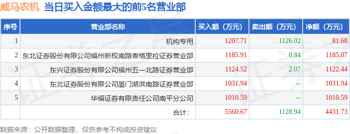 证券之星消息,沪深交易所2025年11月10日公布的交易公开信息显示,威马农机(301533)因日换手率达到30%的前5只证券登上龙虎榜。此次是近5个交易日内第2次上榜。