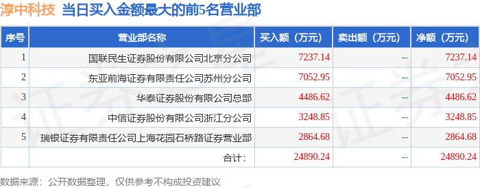 证券之星消息,沪深交易所2025年11月10日公布的交易公开信息显示,淳中科技(603516)因有价格涨跌幅限制的日收盘价格跌幅偏离值达到7%的前五只证券登上龙虎榜。此次是近5个交易日内第2次上榜。