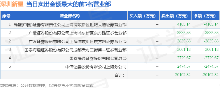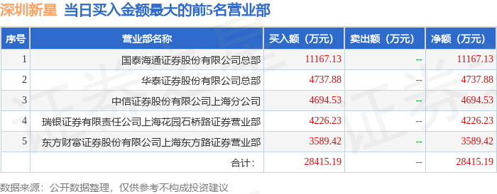 证券之星消息,沪深交易所2025年11月10日公布的交易公开信息显示,深圳新星(603978)因有价格涨跌幅限制的日价格振幅达到15%的前五只证券登上龙虎榜。此次是近5个交易日内第2次上榜。