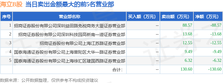证券之星消息,沪深交易所2025年11月10日公布的交易公开信息显示,海立B股(900910)因有价格涨跌幅限制的日收盘价格跌幅偏离值达到7%的前五只证券登上龙虎榜。此次是近5个交易日内第1次上榜。