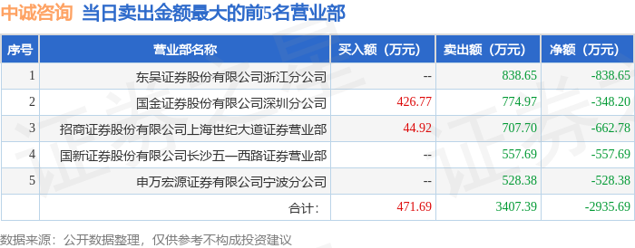截至2025年11月10日收盘,中诚咨询(920003)报收于35.6元,下跌7.63%,换手率44.96%,成交量5.99万手,成交额2.15亿元。
