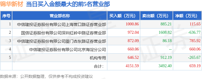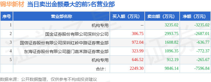 从龙虎榜公布的当日买卖数据来看,机构合计净卖出3500.69万元。