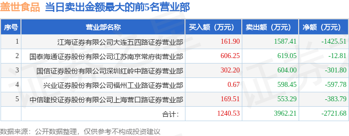 证券之星消息,沪深交易所2025年11月10日公布的交易公开信息显示,盖世食品(920826)因当日换手率达到20%的前5只股票登上龙虎榜。此次是近5个交易日内第2次上榜。