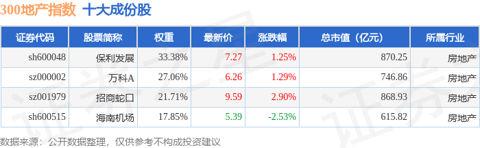 证券之星消息,11月10日,300地产(000952)指数报收于2881.88点,涨0.86%,成交36.9亿元,换手率1.47%。当日该指数成份股中,上涨的有3家,招商蛇口以2.9%的涨幅领涨,下跌的有1家,海南机场以2.53%的跌幅领跌。