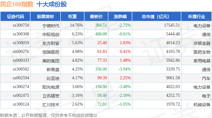 资金流向方面,民企100(399362)指数成份股当日主力资金净流出合计112.21亿元,游资资金净流入合计19.75亿元,散户资金净流入合计92.46亿元。成份股资金流向详情见下表: