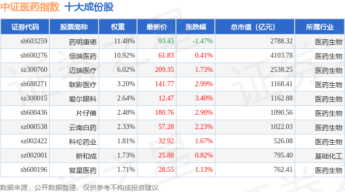 资金流向方面,中证医药(399933)指数成份股当日主力资金净流入合计5.13亿元,游资资金净流出合计3.76亿元,散户资金净流出合计1.36亿元。成份股资金流向详情见下表: