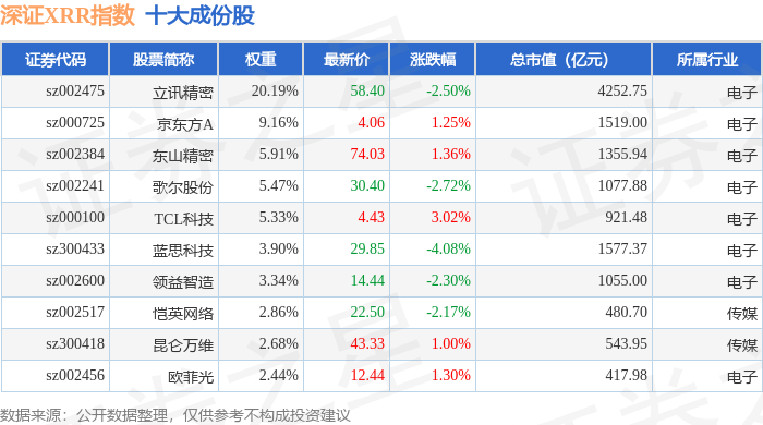 深证XRR(470046)指数十大成份股详情如下: