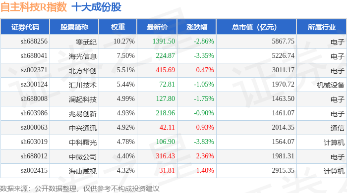 证券之星消息,11月10日,自主科技R(480033)指数报收于10213.5点,跌0.54%,成交802.03亿元,换手率1.51%。当日该指数成份股中,上涨的有28家,中科星图以3.84%的涨幅领涨,下跌的有21家,中科曙光以3.83%的跌幅领跌。