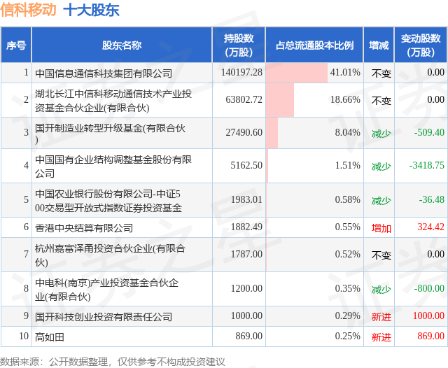 根据信科移动2025年三季报公布的十大股东详情如下: