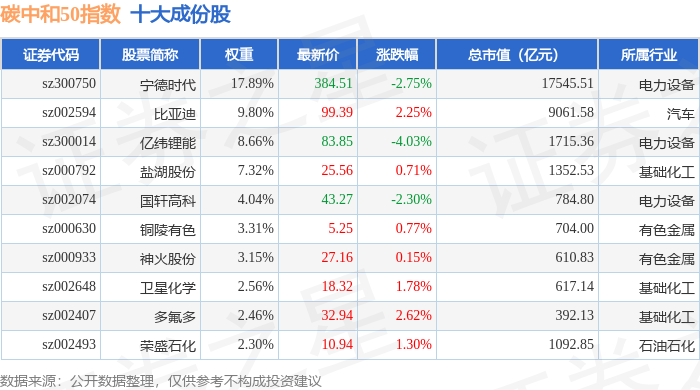 证券之星消息,11月10日,碳中和50(980021)指数报收于2337.04点,跌0.39%,成交650.16亿元,换手率1.55%。当日该指数成份股中,上涨的有27家,鲁西化工以9.99%的涨幅领涨,下跌的有21家,当升科技以5.93%的跌幅领跌。