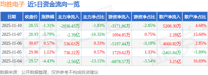 11月10日的资金流向数据方面,主力资金净流出2036.43万元,占总成交额1.83%,游资资金净流出3171.86万元,占总成交额2.85%,散户资金净流入5208.3万元,占总成交额4.68%。