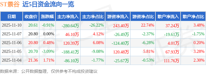11月10日的资金流向数据方面,主力资金净流出280.64万元,占总成交额26.22%,游资资金净流入243.4万元,占总成交额22.74%,散户资金净流入37.24万元,占总成交额3.48%。
