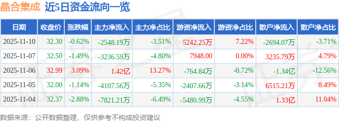 11月10日的资金流向数据方面,主力资金净流出2548.19万元,占总成交额3.51%,游资资金净流入5242.25万元,占总成交额7.22%,散户资金净流出2694.07万元,占总成交额3.71%。